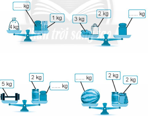 Từ đó em xác định được khối lượng của vật còn lại và điền vào chỗ chấm.