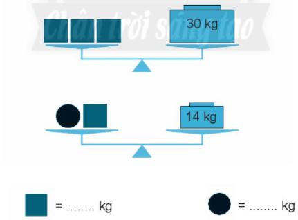 Ta thấy 3 khối hình vuông nặng 30 kg, nên 1 khối hình vuông nặng:
