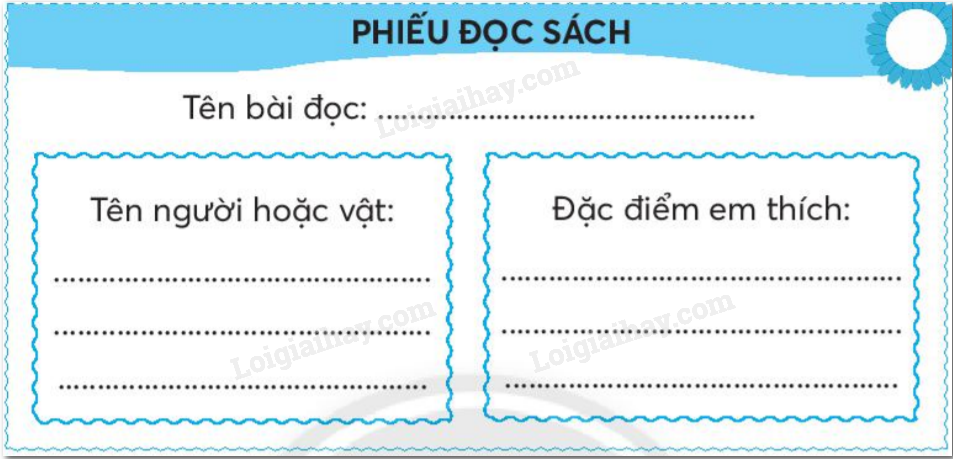 Viết vào Phiếu đọc sách nội dung đã trao đổi với bạn về đặc điểm em thích ở người hoặc vật có trong một bài đọc ở bài tập 1.