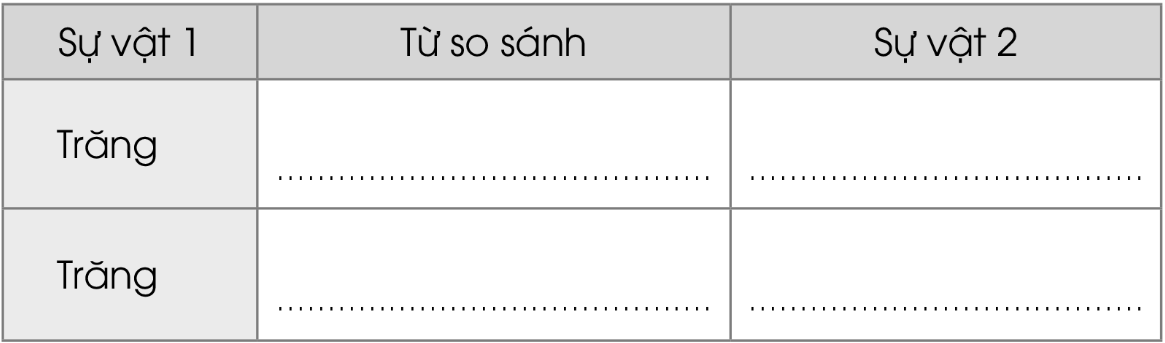Trong đoạn văn bầu trời ngoài cửa sổ (sách giáo khoa, trang 62), vầng trăng được so sánh với những sự vật nào? Điền vào bảng sau những từ ngữ thích hợp để thể hiện hình ảnh so sánh.