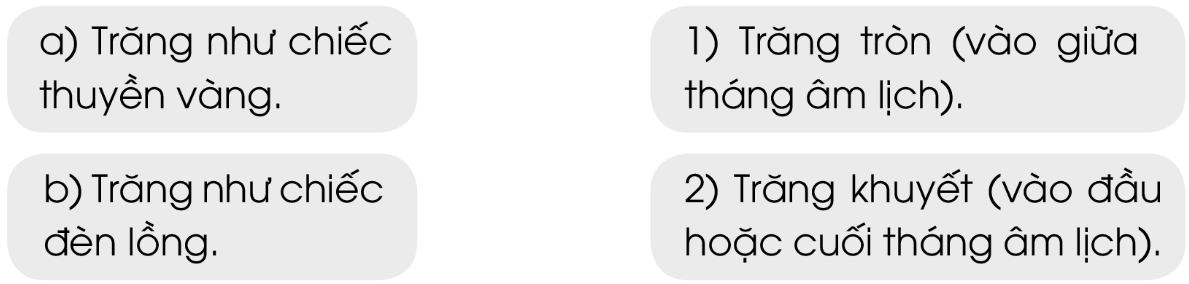 Qua mỗi hình ảnh so sánh, em hình dung vầng trăng như thế nào? Nối đúng: