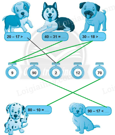 Tính nhẩm kết quả mỗi phép trừ rồi nối với số thích hợp.