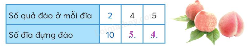 Để tính số đĩa đựng đào ta lấy số quả đào chia cho số đào ở mỗi đĩa.