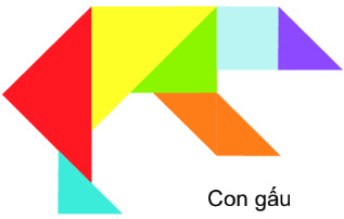 Học sinh quan sát hình vẽ rồi dùng các miếng bìa hình tam giác, hình vuông để xếp hình con gấu theo mẫu đã cho.