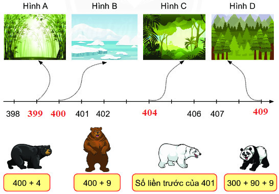 Biểu diễn các số 404, 409, 400, 399 trên tia số ta có: