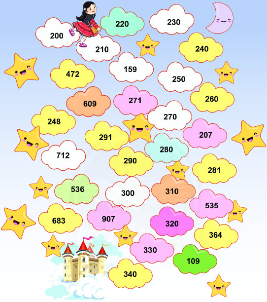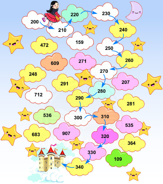 Đi theo thứ tự các số tròn chục để đến vương quốc Truyện Cổ Tích.