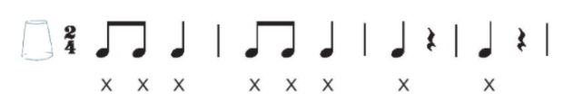 Học sinh có thể sử dụng nhạc cụ gõ bất kỳ để gõ đệm theo hình tiết tấu trên, nếu không có có thể dùng tay đập tiết tấu