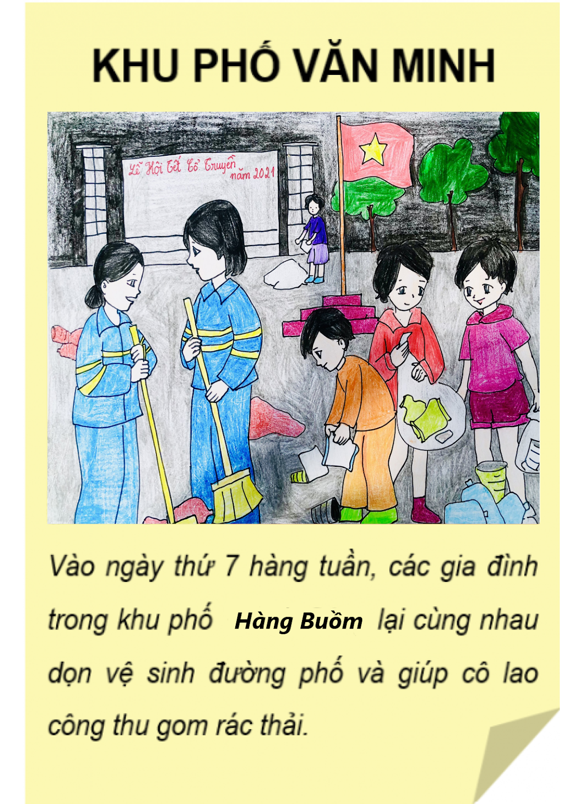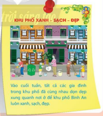 – Chuẩn bị: Một tranh vẽ hoặc ảnh chụp về việc mọi người nơi em ở cùng nhau tham gia dọn dẹp xung quanh nhà ở, bìa cứng, bút màu.
