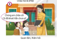 + Lễ phép với thầy giáo, cô giáo (chào hỏi, xưng hô “Con thưa thầy/cô”, đáp lời “Vâng ạ!”, …)