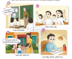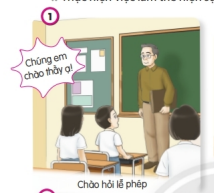 + Lễ phép với thầy giáo, cô giáo (chào hỏi, xưng hô “Con thưa thầy/cô”, đáp lời “Vâng ạ!”, …)