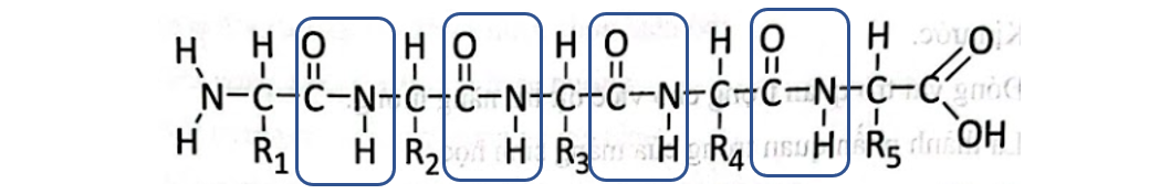 b) Hãy đóng khung xung quanh các nguyên tử của từng liên kết peptide.