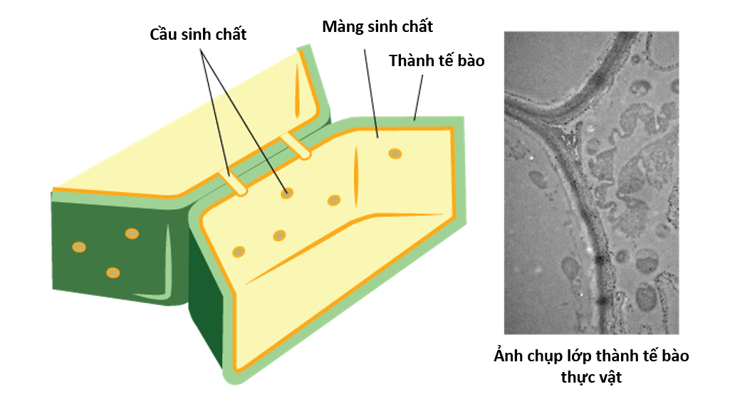Thành tế bào có cấu tạo vững chắc nên có chức năng quy định hình dạng và bảo vệ tế bào. Hai tế bào thực vật nằm sát nhau có cầu sinh chất – chính là cầu nối giữa tế bào này với các tế bào xung quanh – giúp lưu thông xuyên suốt giữa các tế bào thực vật với nhau.