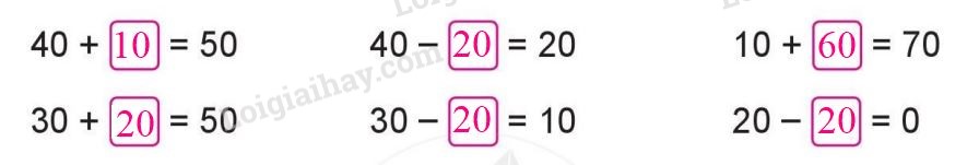 40 – 30 = 10            50 – 50 = 0               90 – 60 = 30