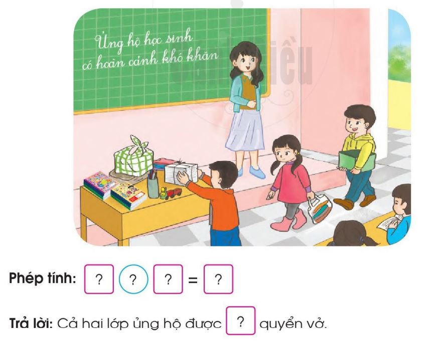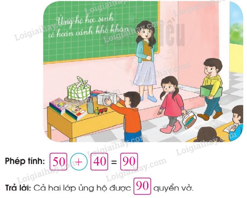 Lớp 1A ủng hộ học sinh có hoàn cảnh khó khăn được 5 chục quyển vở, lớp 1B ủng hộ được 4 chục quyển vở. Hỏi cả hai lớp ủng hộ được bao nhiêu quyển vở?