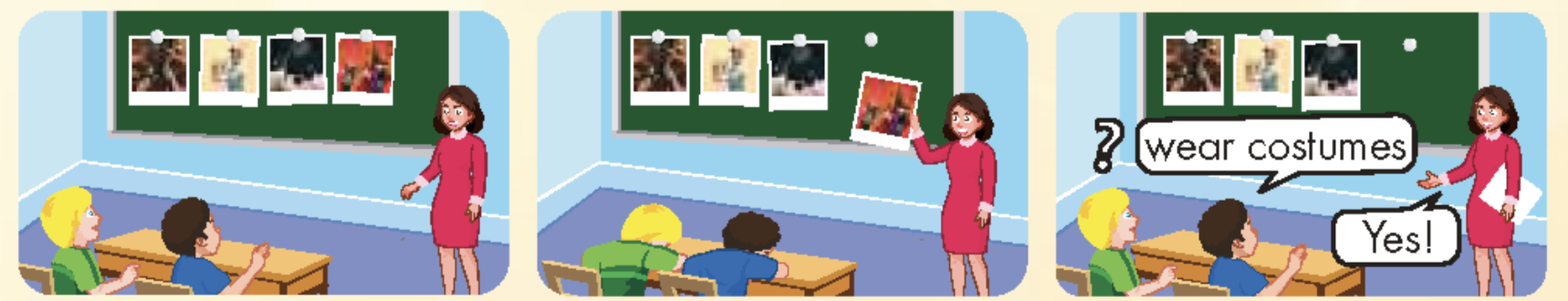 4 Trường tôi thường tổ chức tiệc vào ngày này. Chúng tôi hát, nhảy và chơi rất nhiều trò chơi. Chúng tôi cũng nhận được quà nữa.