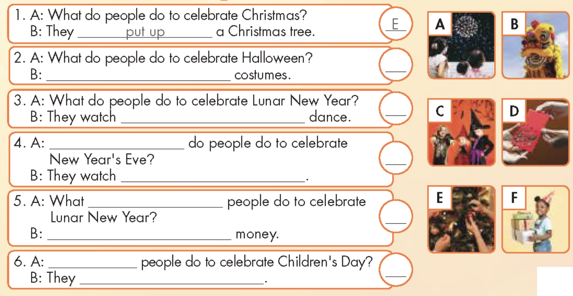 F. Look at C and E. Write about your favorite holiday.