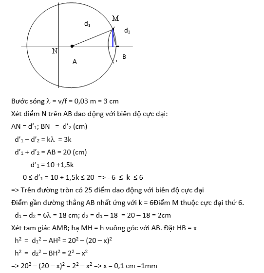 Sử dụng công thức tính biên độ tại 1 điểm bất kì trong trường giao thoa với 2 nguồn ngược pha nhau: