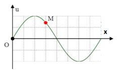 Trên một sợi dây dài đang có sóng ngang hình sin truyền qua theo chiều dương của trục $Ox$. Tại thời điểm $t_0$ một đoạn của sợi dây có hình dạng như hình bên. Hai phần tử $M$ và $O$ dao động lệch pha nhau?