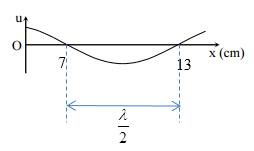 Ta có: \(\frac{\lambda }{2} = 13 – 7 = 6cm \to \lambda  = 12cm\)