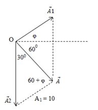 – Từ dữ kiện đề bài \({A_1} = 10cm;{\varphi _{x1}} = \varphi ;{\varphi _{x2}} =  – \dfrac{\pi }{2};{\varphi _x} =  – \dfrac{\pi }{3}\) ta vẽ được giản đồ vecto :