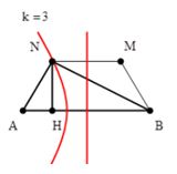 Để diện tích $ABMN$ là lớn nhất thì $AH$ phải lớn nhất điều này xảy ra khi $N$ nằm tên cực đại thứ $3$