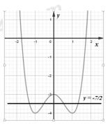 Câu 16: Đồ thị sau đây là của hàm số \(y = {x^4} – 3{x^2} – 3.\) Với giá trị nào của m thì phương trình \({x^4} – 3{x^2} – 3 = m\) có đúng 3 nghiệm phân biệt.