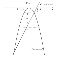 Câu 1 (2,5 điểm): Cho parabol \(\left( P \right):\,\,y = – {x^2}\) và đường thẳng \(\left( d \right):y = 2x – 3\)