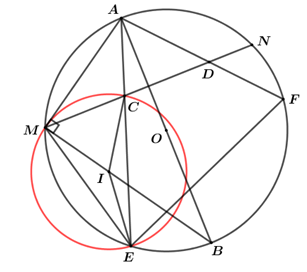 +) \(\angle AMN = \angle MEA\) (góc nội tiếp bị chắn bởi hai cung bằng nhau và ).