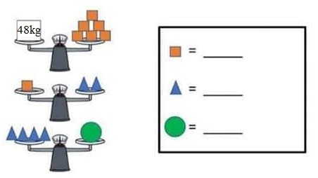 Cân nặng của mỗi khối màu xanh lá cây là 4 x 4 = 16 (kg)