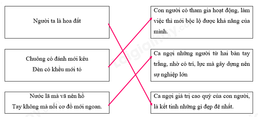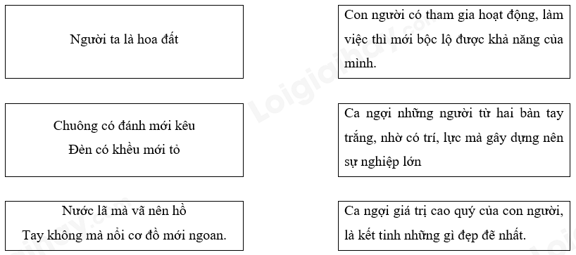 Câu 2: Nối các câu tục ngữ sau với nghĩa tương ứng: