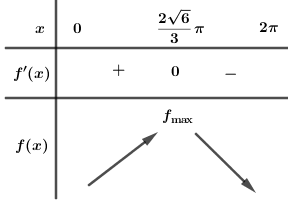 Do đó \(f\left( x \right)\) đạt GTLN khi \(x = \frac{{2\sqrt 6 }}{3}\pi \) hay \({V_{\max }}\) khi \(x = \frac{{2\sqrt 6 }}{3}\pi \).