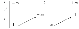 Câu 18. Cho hàm số \(y = f\left( x \right)\) xác định trên \(\mathbb{R}\backslash \left\{ 1 \right\}\), liên tục trên mỗi khoảng xác định và có bảng biến thiên như hình bên dưới. Khi đó, đồ thị hàm số đã cho có bao nhiêu đường tiệm cận?