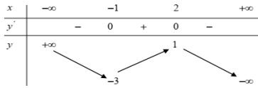 Ta có: \(f’\left( x \right) = 0 \Leftrightarrow \left[ \begin{array}{l}x = 2\\x = – 1\,\,\left( {nghiem\,\,boi\,\,chan} \right)\\x = – 3\end{array} \right.\).