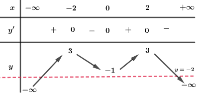 – Phương trình \(f\left( x \right) = – 2\) có 3 nghiệm phân biệt.