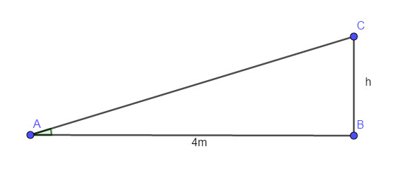 Xét tam giác vuông ABC vuông tại B có: \(\tan \left( {\angle BAC} \right) = \dfrac{{BC}}{{AC}} = \dfrac{h}{4}\)