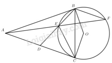 b) Gọi D là trung điểm của AC, BD cắt đường tròn tại E, đường thẳng AE cắt đường tròn \(\left( O \right)\) tại điểm thứ hai F. Chứng minh \(A{B^2} = AE.AF\).