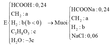 nNaOH(pư với HCl) = nHCl = 0,06 mol → nNaOH (pư với E) = 0,3 – 0,06 = 0,24 mol = nCOO(E)