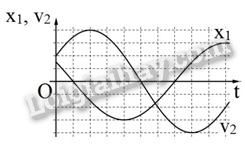 Câu 3: Hai vật M1 và M2 dao động điều hòa cùng tần số. Hình bên là đồ thị biểu diễn sự phụ thuộc của li độ x1 của M1 và vận tốc v2 của M2 theo thời gian t . Hai dao động của M2 và M1 lệch pha nhau: