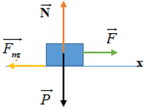 Theo định luật II Newton có:  \(\vec F + \overrightarrow {{F_{ms}}}  + \vec N + \vec P = m\vec a\)