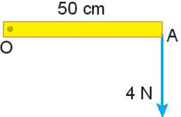 Từ hình vẽ, ta thấy lực có độ lớn 4 N và cánh tay đòn d = 50 cm = 0,5m. Áp dụng công thức tính moment lực là M = F.d = 4.0,5 = 2 N.m