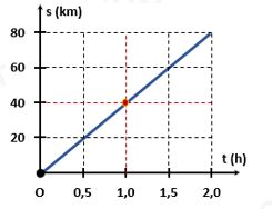 Câu 19: Hình bên biểu diễn đồ thị quãng đường – thời gian của một xe buýt xuất phát từ trạm A, chạy theo tuyến cố định đến trạm B, cách A 80km. Quãng đường đi được của xe buýt sau 1h kế từ lúc xuất phát là: