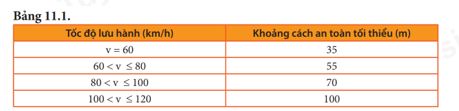 Câu 20: Khoảng cách nào sau đây là khoảng cách an toàn theo Bảng 11.1 đối với xe ô tô chạy với tốc độ 25 m/s.