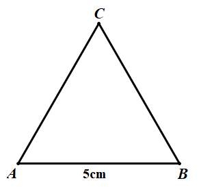 a) Hình tam giác đều \(ABC\) có cạnh bằng \(5cm\).