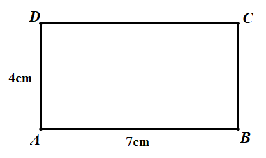 b) Hình chữ nhật \(ABCD\) có chiều dài \(AB = 7cm\), chiều rộng bằng \(AD = 4cm\).