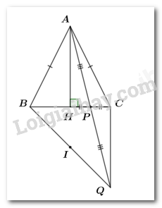 Bài 3. (3,5 điểm) Cho tam giác $ABC$ cân tại $A$, kẻ $AH$vuông góc với $BC$$\left( {H \in BC} \right)$. Gọi $P$ là trung điểm của $HC$. Trên tia đối của tia $PA$ lấy điểm $Q$ sao cho $QP = PA$.