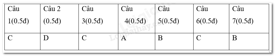 ĐÁP ÁN KIỂM TRA CUỐI HỌC KỲ I