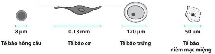 Câu 17: Hình ảnh dưới đây mô tả kích thước một số tế bào ở người: