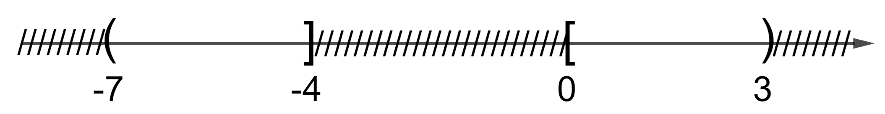 Câu 6: Biểu diễn trên trục số các tập hợp \(\left[ { – 7,3} \right]\backslash \left[ { – 4,0} \right]\) là hình nào dưới đây.