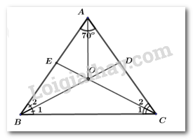 Câu 3. Cho \(\Delta ABC, \widehat A = {70^\circ }\), hai đường phân giác BD và CE cắt nhau tại \(O\), thế thì: