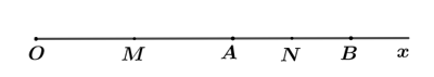 Mặt khác, \(M\) là trung điểm của \(OA\) và \(N\) là trung điểm của \(AB\) nên \(A\) nằm giữa \(M\) và \(N\).